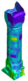 Misure Soniche e UltrasonicheTecnica non distruttiva per l'analisi della continuità materica nei Beni Culturali. Dove non si possono fare 1000 endoscopie o carotaggi affidarsi alla misura della velocità del suono può essere una valida soluzione. Qui a fianco esempio di tomografia 3D sulle murature perimetrali di un edificio storico. |